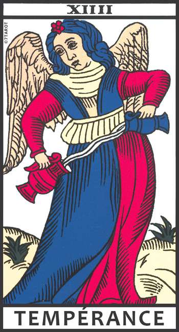 L’homme est écartelé entre ces deux inclinations : le Ciel et la Terre. La Tempérance est la voie du milieu enseignée par le Bouddha, la juste mesure entre le radicalisme absolu de la monade et le relativisme de la personnalité.