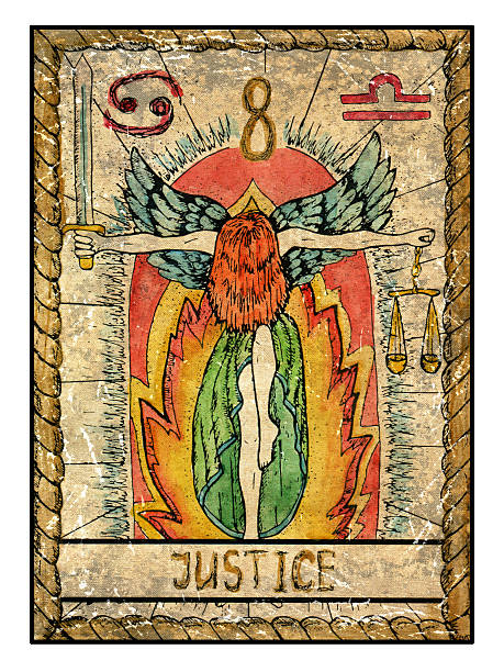Cette lame évoque l’idée de la loi qui s’interpose entre l’action libre de la volonté individuelle et la volonté universelle de Dieu, l’essence même de l’être : la loi de karma qui est une loi rectificative et protectrice qui nous empêche d’errer définitivement sur les chemins de traverse, mais qui au contraire nous ramène toujours sur la voie de l’évolution, de l’expansion de conscience.