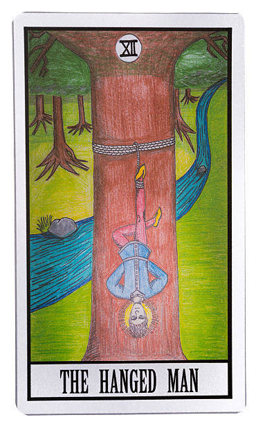 Le Pendu représente un homme renversé, dans la vie duquel la gravitation d’en haut a remplacé celle d’en bas. C’est à la fois un bienfait et un martyre. L’âme est suspendue entre le Ciel et le Monde, elle vit toujours dans le monde mais n’est plus de ce monde (image de la lévitation des Saints). Ce sont les pieds qui sont au contact du Ciel : de par la certitude qu’apporte la foi, la nouvelle activité du cœur, elle agit, se met en mouvement de par la volonté et se dirige vers un lieu qu’elle ne connaît pas, mais elle sait qu’elle doit le recevoir en héritage.
